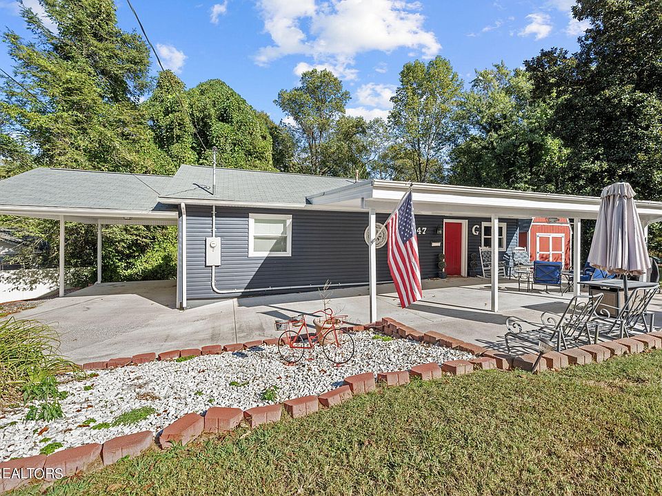 Seeing is believing! Check out this precious Oak Ridge cemeso renovation! No detail has been ignored - updated roof, siding, HVAC, flooring, and more. Double carports with one serving as a deep covered porch plus patio if you so choose. Jaw-dropping kitchen remodel w/white cabinetry and white quartz counters and backsplash. New LVT flooring throughout. Open living space w/separate sunroom that opens to pretty, private and wooded backyard. Closing date to be after November 17, 2023. Red storage building does not convey. Kitchen refrigerator does not convey.