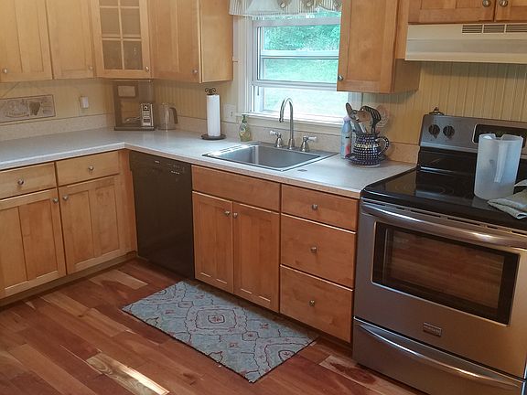 Sunlit, adorable and well maintained. This vinyl sided three-bedroom ranch home has a lovely updated eat in kitchen with skylight and a large pass through window into the living room adding a wonderful sense of extra space. Upgraded cherry flooring in the living room, kitchen and hallway as well as tile flooring and skylight in the bath are also a plus. Outside there is 3-season pavilion style gazebo; a newer storage shed, ample parking and a newer paved driveway. Full basement offers extra storage and the hot water tank is just a few months old. Close to schools and hiking trails plus Florence and Northampton Centers.