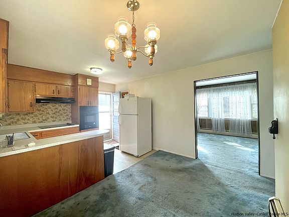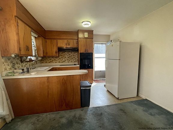 Cozy three bedroom Ranch located in Lake Katrine minutes to elementary schools and the Town of Ulster shopping district. Wood floors in all three bedrooms, carpeting in the living room, dining room and hallway. The owner believes that there are wood floors under the carpeting. There is a full size unfinished dry basement with concrete floor. Washer and dryer, furnace mechanicals are all located in the basement. There is a submersible sump pump located in one corner of the basement. Newer oil tank and the furnace is serviced yearly. The house needs updating but currently all the mechanicals and appliances are in working condition. There is a nice level yard out back and huge beautiful Rhododendron bushes cover most of the front of the house. The front bottom half of the house is a red brick and the upper half is white aluminum siding. There is a white detached 14' x 20' garage built in 1970 with a concrete floor to store all of your tools and gardening supplies! This is a very cute manageable ranch in the Town of Ulster within 15 minutes to everything! Get a little paint and freshen this one up-you will be glad you did!!!