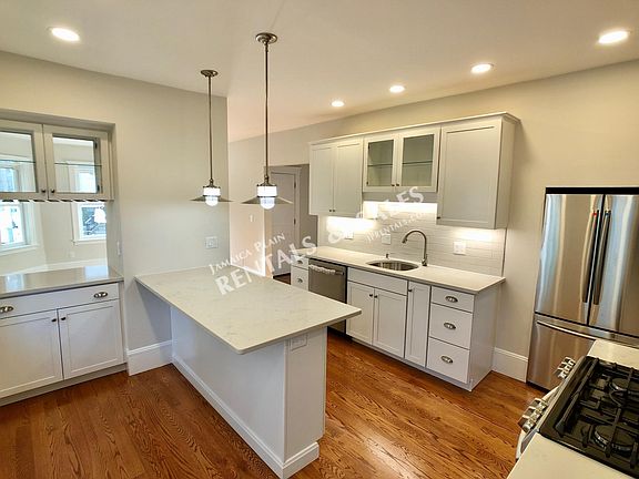 Situated on a quite street a stones throw from the Emerald Necklace bike trail and Olmstead Park, this beautifully updated 3 bedroom apartment features a brand new eat in kitchen with quartz counter tops, massive island, stainless steel appliances, tons of cabinet storage, separate pantry, and 5 burner gas stove. Also included are in unit full size washer/dryer, 2 private porches, huge basement storage locker, lovely new bathroom with glass tub enclosure, central AC, new efficient gas heating system, and last but not least 1 off street parking spot! This apartment has it all, so don't hesitate and give us a call to schedule a showing. Cats are negotiable, FIRST, SECURITY, FULL FEE due upfront with a lease through 5/31/20 with option to renew. PLEASE INQUIRE ABOUT A ONE TIME CLEANING SERVICE AND A PERSONAL INTERIOR DESIGNER. FIRST, SECURITY & FULL FEE due upfront with a lease through 5/31/20 with option to renew.