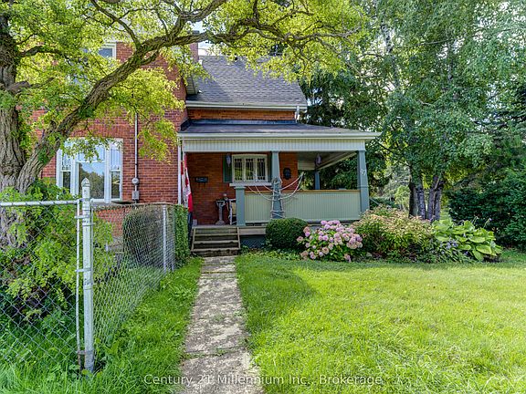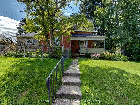 ONE OF A KIND! Century type brick home on a corner lot within walking distance of Meaford hospital. Features include modern addition, bedrooms and main bath on second level, unique powder room on the main level, economical gas heat/ac, gad fireplace, stately original front porch and two decks, private parking, big fenced yard with room for your very own gardens.. You can move in the way it is or renovate to your heart content.