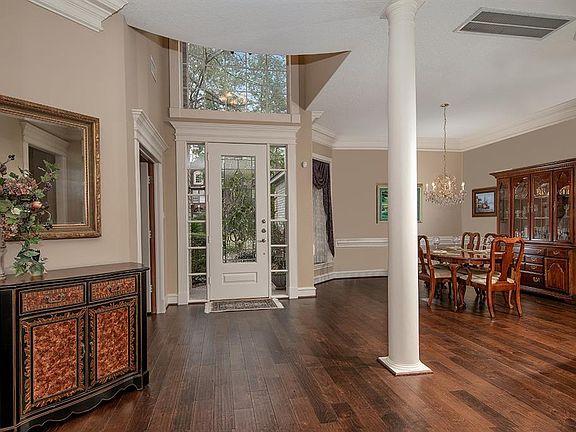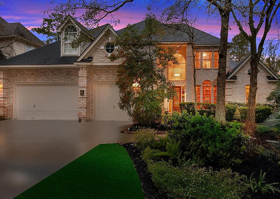 Outstanding Westbrook custom home in the desirable waterfront neighborhood of The Cove in Panther Creek! Close to exemplary schools, Northshore Park, restaurants & shopping! Stunning hardwood floors, beautiful trim work, high ceilings, natural light, built-ins and abundant storage throughout. Remodeled open concept kitchen with granite counters, stainless steel appliances and large island with gas cooktop overlooks sunny breakfast room & den with dual sided gas fireplace into formal living with built-in glass front cabinets with lighting; elegant formal dining; handsome study with wood paneling and French doors; master retreat down with fully remodeled master bath; 3 spacious bedrooms and game room up; double paned windows throughout house; three car garage; serene backyard with covered patio, sparkling pool with rock waterfall and spa!