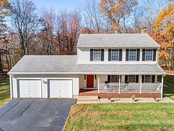 IF YOUR LOOKING FOR A GREAT HOME ON OVER 11 ACRES LOOK NO MORE! This 3 bedroom 2.5 bath Colonial is located in a convenient, yet private setting and boasts 11.59 acres. Possible uses for the land could be a horse property, garden or private walking and riding trails. The interior welcomes you to an open kitchen and dining room with fireplace which also has sliders leading to a large open deck to enjoy that private yard! There is a large living room with hard wood floors and ample space to entertain. The second floor has three spacious bedrooms with a master bedroom with a full bath! There is a full unfinished basement for ample storage and allowing for your ideas. Looking for more storage, the two car attached garage allows more. There is a GENRAC whole house generator for piece of mind in the stormy times! All this and located just minutes from I-84 (X-69) for easy commuting, close to schools, UCONN and shopping.