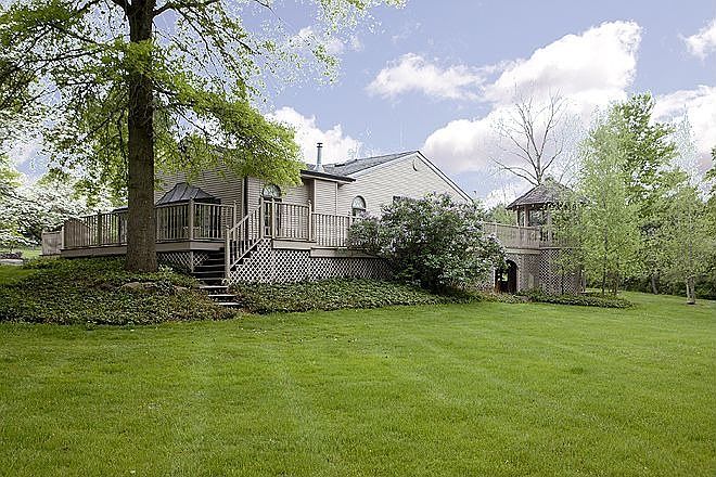 Surrounded by dedicated "open space", this property is located on one of the most scenic roads in Mercer County. Enter via a gated winding driveway over a stream to a peaceful and relaxed lifestyle. The contemporary ranch house is sundrenched and totally enveloped by a deck. All interior rooms provide tranquil views. The entrance foyer is skylit and has a marble floor. The kitchen features granite, cherry cabinetry and wood floors. This property provides a spacious and peaceful retreat. The ample garage provides parking for six cars. The walkout basement includes a wine closet. Ten minutes to downtown Princeton; twenty minutes to the train station, and five minutes to I-95. This property presents many possibilities for guests and extended family.