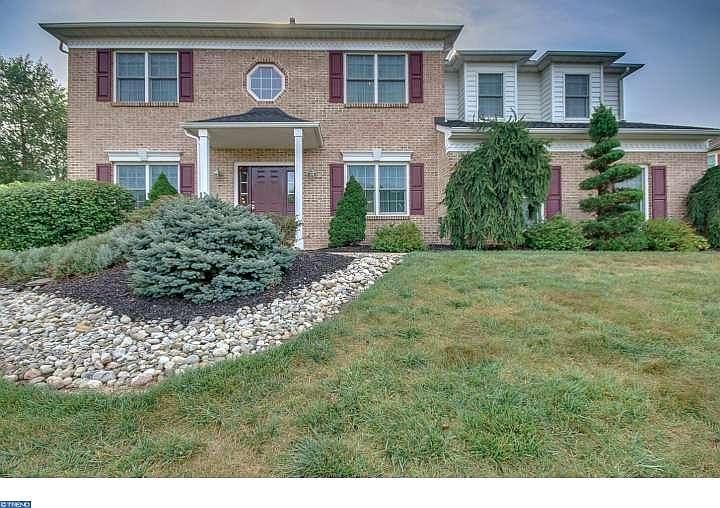 Don't wait! You must see this spectacular 4 bedroom 2 full and 1 half bathroom brick front colonial and its host of luxurious upgrades for yourself. You will be astounded by the breathtaking beauty of its gorgeous outdoor oasis which boasts a low maintenance salt water in-ground pool with waterfall, expansive stamped concrete and paver patio and lush flowering landscaping that not only screens it from the view of the neighbors but also attracts hummingbirds and butterflies. The interior of the home is equally lavish with Patagonia Cherry hardwood floors that flow throughout the first floor, giving the entire space a dramatic presence that cannot be matched and the custom crown molding showcased throughout the home only adds to that ambiance. You will be swept in by the two story foyer and fall in love with the beautifully appointed office complete with built-in shelving and divided glass door. The spacious formal living and dining room are ideal for entertaining and are accented by a chair rail in addition to the crown molding and hardwood floors. The dining room also features a large bay window that lets in lots of natural light. The custom gourmet kitchen by Signature Kitchens is fit for a chef with its 42 inch Cherry cabinetry, granite countertops, stainless steel appliances, center island with built-in microwave and electrical outlets, custom built subzero refrigerator, 5 burner ranger, Monogram double oven and adjoining breakfast room with built-in desk. The breakfast room also opens to bright airy family room with cathedral ceiling, skylights, wall to wall stone fireplace and sliding doors that lead out onto the custom paver patio. The second floor is equally well appointed with an update hall bath with custom cabinetry, granite countertops and custom tile floors, walls and tub surround and four spacious bedrooms with ample closet space, including a enormous owner's suite highlighted by window seats with built-in storage, oversized walk-in closet and a private bath with skylights, marble tile floors, granite walls and an luxurious glass shower enclosure with granite shower seat, multiple rain shower heads and marble surround with seamless glaze. The home also features a full finished basement with spaces that could be utilized for a home gym, second office, casual entertainment area, home theater or play room. All this located within minutes of Downtown Doylestown Borough and in the award winning Central Bucks School District.