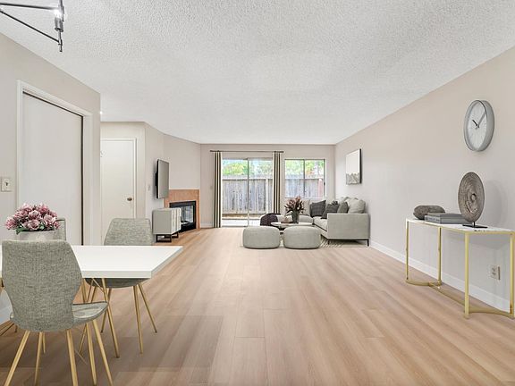 Welcome to California living in this tastefully remodeled ground-floor condominium in the highly sought-after Raintree complex in Hayward. This two-bedroom, two-bathroom unit exudes charm with its spacious open floor plan bathed in natural light, cozy fireplace, and private oversized backyard. The condo boasts fresh paint, new LVT flooring, updated lighting, and remodeled kitchen and bathrooms. It offers a one-car garage with direct access, an additional uncovered parking spot, and an in-unit washer and dryer.