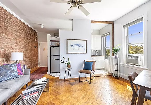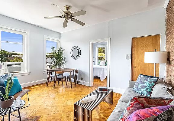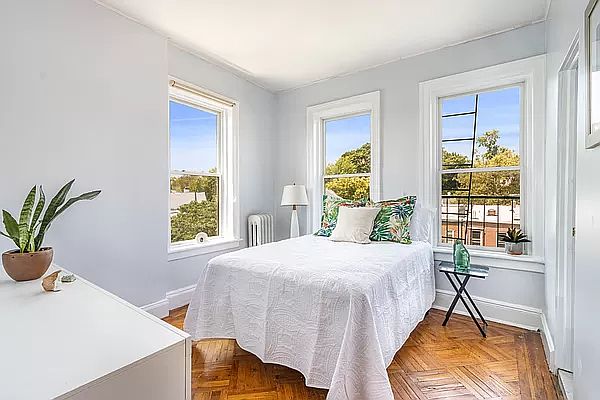 Moments from Prospect Park, this sun-drenched, treetop one bedroom comes complete with two large walk-in closets, en suite windowed bathroom with soaking tub, new energy efficient windows, basement storage space, and an updated kitchen. This small Windsor Terrace co-op offers free laundry and WiFi, a charming shared backyard and garden and very low monthlies. Cats are allowed, dogs require board approval.