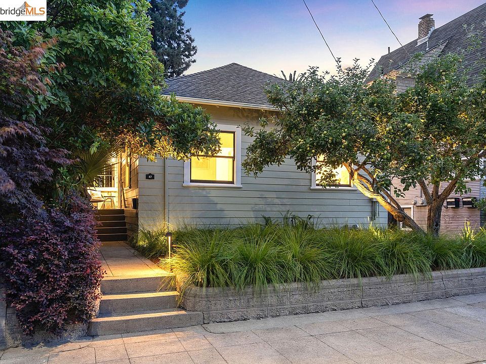 Don't let the modest street view fool you! Inside this one-level bungalow lives a stunning space brimming with designer-details, vaulted ceiling, skylights, and a Scandinavian-inspired style. The entry, living, kitchen, and dining areas all share one open space, views of the garden, and a floor-to-ceiling tile feature wall framing the Swedish gas-stove. Intricate blond matchstick oak floors brighten the interior. The natural kitchen palette combines matte oak cabinetry and soft gray Brazilian "leathered" granite, a large island, radiant heat flooring, and a Wolf range. A cozy TV den and a combined laundry/pantry are conveniently near the kitchen. The front of the floorplan has two bedrooms, a shared full bathroom, and a primary en-suite bedroom just beyond. Outside the glass sliding doors is a large deck, an ultra-charming cottage garden, a massive kitchen-garden bursting with fresh produce, fruit trees, stone patio, plus a detached home office. Just dreamy! Basement storage and plenty of parking in the long driveway. WalkScore® of 97 “Walkers’ Paradise”!