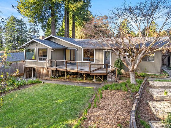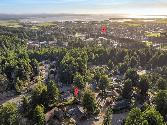 Enjoy the ease of single level living in this 4 bedroom, 2 bath, classic ranch style house that is situated in a prime cul-de-sac near Cal Poly Humboldt. The home has been well-tended and displays thoughtful details and updates. Step inside to sunlight streaming across slate and birch hardwood floors. Wood windows trimmed in recycled Doug fir capture dynamic skies, views of the hills, redwoods, and the ocean in the distance. A fireplace and large central skylight further enhance the main living space. The kitchen has a large island with a butcher block counter, that functions equally well for prepping or serving. The bathrooms have custom cabinetry, tile work, eco-friendly Marmoleum flooring and a Paperstone counter. Solar tubes brighten the hallway and cedar boards line closet floors. An inviting redwood deck overlooks the spacious back yard and 4 raised garden beds. Other features include a bonus basement workshop and storage area. The new roof, rebuilt deck, and fresh exterior paint delivers a home that is set up for minimal future maintenance.