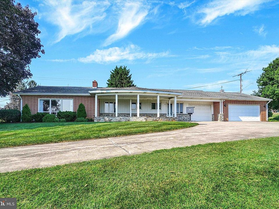 This is probably one of the most well built homes I've had the pleasure of selling. It has only been lived in by the original 2 owners. Over the years it has been absolutely cared for and maintained top to bottom and looks like the day they moved in. This beautiful stone and brick home has a heated one car attached garage as well as a 2 car attached garage. Covered front porch overlooks beautiful farm fields. This is a solid plaster wall home with hardwood and carpet flooring. You'll find a very large basement with a pool table and small wet bar(included in the sale). Office in the basement also. Drive up the nice wide concrete driveway and choose either the heated 1 car garage or the 2 car garage or enter through the beautiful stone floor breezeway. There's a nice kitchen and dining room leading to a huge living room. 3 bedrooms with built in closet spaces. All solid plaster interior even the garages. Outside you will find a whole house generator on propane (tanks are owned and will convey). Super nice manicured lawn all around this fine home. Walk across the street and jump in the pool at Shanbergers swimming pool on hot days, it's a public pool. Overall a lovely home I'm sure you will love. Turn left out the driveway and it's a quarter mile to Md. and about 17 miles to Bel Air Md. and not too far to Aberdeen proving ground.