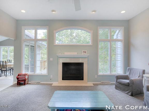 Amazing 6 bedroom 3 1/2 bath overlooking the Rogue River with shared access! Enjoy walking to downtown Rockford on the neighborhood boardwalk or experience peace and quiet right beside river. This spacious home features a finished lower level walkout with large family room, 3 bedrooms, full bath, and a wood burner! The main level features the master suite, laundry, dining area, private office, and two other bedrooms. This home has everything to offer including a 3 stall garage, wheelchair accessibility, award winning Rockford schools, and spectacular backyard views. Rogue River View Estates is special place to live. Don't miss this opportunity!