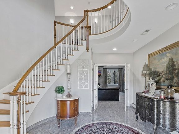 Prestigious neighborhood, property abbutting town forest. Unique elegant colonial with brick and wood siding. A stunning open foyer with circular staircase, open concept layout living room, kitchen and sitting room with fireplace. Granite countertops, stainless steel appliances, quartz table/island. Lots of closets and storage throughout. First floor laundry, sitting room with cathedral ceiling overlooks a wrap around deck. Formal living room on first floor could be used as a home office. Fully finished walk out basement high ceilings with fireplace, office, bedroom and full bathroom and so much more. Seven zone heating system, new oil tanks (2020), 2 air condition units, 2 car garage under, and sprinkler system. Easy to show.
