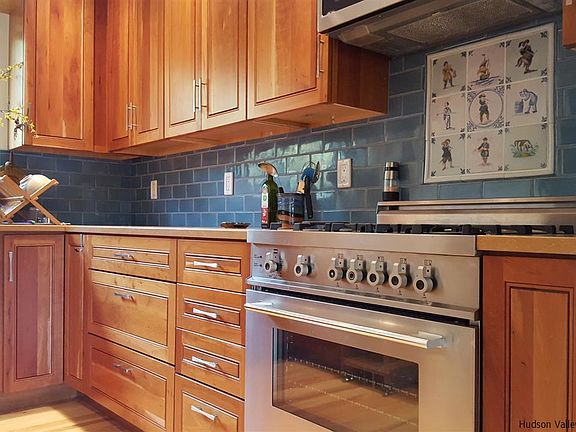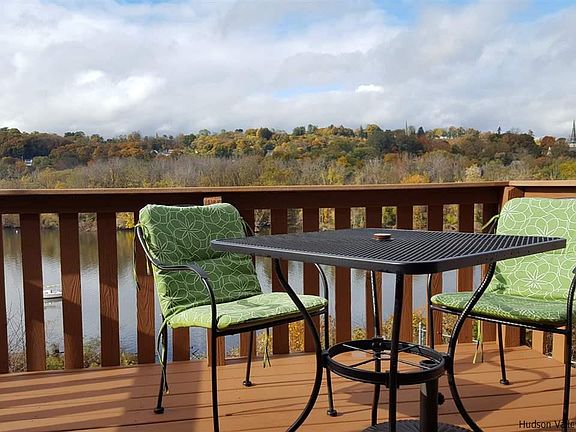 Enjoy unsurpassed year round views and carefree living with this end unit, 3 bedroom, 2 1/2 bathroom townhome on the Rondout Creek. Sip your morning coffee from your raised deck and watch the boats drift by. Exquisite views of the river and historic buildings of the Rondout/Kingston Waterfront District are yours to enjoy throughout the seasons. This home has been meticulously maintained and updated by the Seller. Oak flooring flows through out the 1st and 2nd floors, all doors are solid maple. The kitchen has a gas stove, fisher paykel refrigerator, custom cabinets and corian counters. Vintage Delft tiles collected by the Seller are set above the stove top. From the open plan dining/living room sliding glass doors open onto your deck and the wonderful views. The upstairs bathroom has a tub/shower and double wash basins set in a marble counter top. Both back bedrooms have river views, the Seller currently uses one as an office. The tiled walkout basement is fully finished with a family room complete with wood burning fireplace, a full bathroom with shower and an unfinished laundry room with washer, dryer, and new boiler. Walk out of the basement sliding doors onto your patio and imagine it filled with pots of flowers next Summer. For water enthusiasts, dock your boat at one of the many local Marinas or launch your Kayak in the creek. After a day on the water, stroll across the old Wurts bridge to enjoy the restaurants, boutiques and galleries on The Strand. This home offers close proximity to Kingston, Woodstock, Saugerties, New Paltz and Interstate 87. It is the perfect full-time or weekend, worry free residence. All you have to do is turn up and relax.