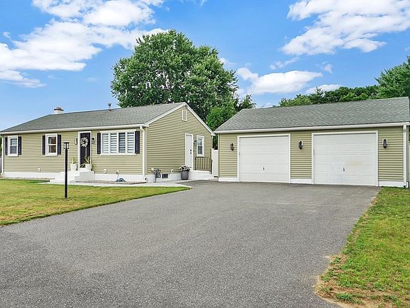 Welcome to this beautifully updated 4-bedroom, 1.5-bath ranch nestled in a sought-after neighborhood in Agawam, with central air & central vac. This home offers modern conveniences and stylish finishes throughout, perfect for daily living. The kitchen features a sleek design, complete with a paneled dishwasher for a seamless look and a stunning waterfall countertop edge that extends into a breakfast bar. The open and inviting floor plan includes a dining room with sliding doors leading to a large deck, ideal for entertaining and enjoying the view of the fully fenced yard which includes a custom built playscape. The main level hosts three spacious bedrooms, while the finished basement offers a large fourth bedroom, a half bathroom, and an expansive bonus room, perfect for activities or a home office setup. A detached 2-car garage, equipped with a dedicated 220V line provides ideal space for workshop needs or electric vehicle charging. Don't miss your chance at this turn key home!