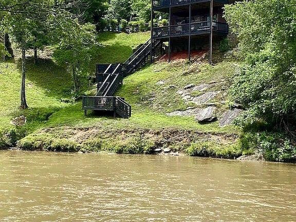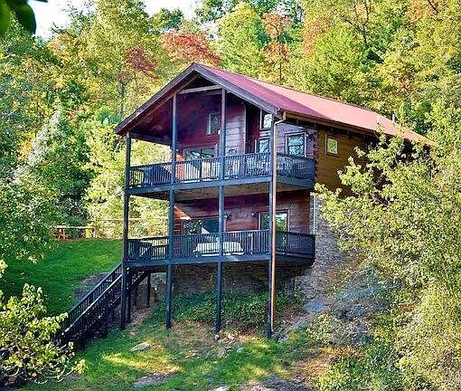 The Riverview Lodge Murphy is on beautiful Hiwassee River in the historic town of Murphy, NC. Whether it's a family vacation, restful romantic getaway or a holiday away from home, you'll be treated to the comfort of our 1700 square-foot, luxury 3 bedroom - 2 bathroom log home. Your private escape features outdoor seating on two cover decks and direct access to the beautiful Hiwassee River. With central heating & air , a stone-gas fireplace, and sliding doors that open to spectacular views, the Riverview Lodge is enjoyed year round.