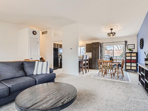 Impressive bi-level home nestled in Founders Village! Situated on a quiet corner lot, this property offers the perfect balance of tranquility and convenience. Make the most of a great layout that has been lovingly maintained and thoughtfully updated over the years. As you enter the home, you'll be greeted by the bright and airy living room, featuring vaulted ceilings and beautiful bay windows that fill the space with natural light. The adjacent kitchen includes granite countertops, black appliances, and a window overlooking the backyard. The formal dining space offers easy access to the backyard through sliding glass doors. On the upper level, you'll find three spacious bedrooms, including the primary bedroom with an ensuite bathroom. The lower level boasts a generously sized family room with a gas fireplace and built-in shelving, providing the perfect space for relaxation or entertainment. Additionally, there's a fourth bedroom and bathroom, offering plenty of flexibility for guests or a home office. The fully fenced backyard is complete with a large deck and manicured lawn. The two-car attached garage backs to an alley, offering easy access and plenty of storage space. Installed solar panels ensure low utility bills. Close to Founders Park, King Soopers, Starbucks, and much more! Recent updates include new carpet, new furnace, new oven, new attic insulation, new bathtub and plumbing, new ceiling fans, and more.