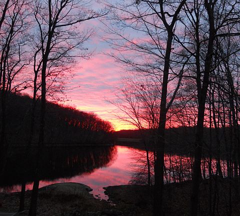 Glass sliders & Hi windows emphasize the panoramic beauty of this waterfront property. A double-sided fireplace is viewed from the dining room through to the family room. The basement has another fireplace. We are surrounded by lakefront and trees and have a huge back deck and a small front deck.