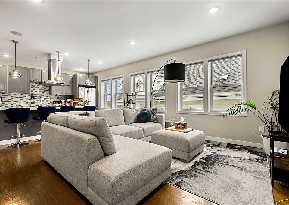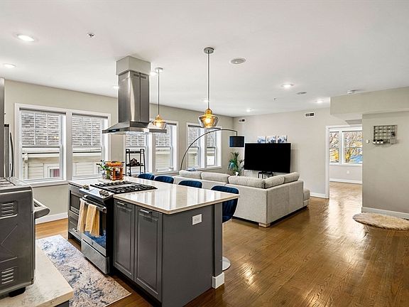 Welcome to this beautifully maintained 2-bedroom, 2-bath condominium in Dorchester, MA. Built in 2019, this 1,224 sq. ft. home features an open floor plan with abundant natural light and a seamless flow throughout, creating a bright and inviting atmosphere.The chef-inspired kitchen boasts a large island, stone countertops, shaker cabinets, a stylish backsplash, stovetop, and island range hood, making it perfect for cooking, entertaining, or simply gathering with friends and family.The primary suite offers a walk-in closet and private ensuite bath with a walk-in shower, while the second bedroom is positioned on the opposite side of the home for privacy, making it ideal for guests, a home office, or a personal retreat.Enjoy your private balcony, perfect for morning coffee or evening relaxation, and the convenience of a single garage space. Located in a prime location, this modern condo combines style, comfort, and convenience, providing the perfect balance of contemporary living.