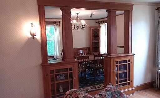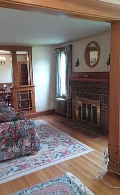 Charming Colonial on a nice corner lot. Gumwood and natural wood throughout. Pretty Fireplaced living Room with built- ins and opens to the sunroom/den. Dining room with wainscotting and a built in hutch. Large eat in kitchen with ashe cabinets and corian counter tops. .Hardwood floors throughout. Great yard and 1 car detached garage.