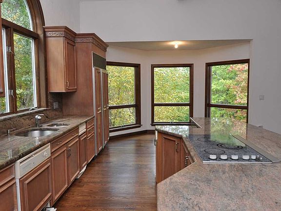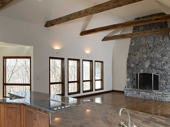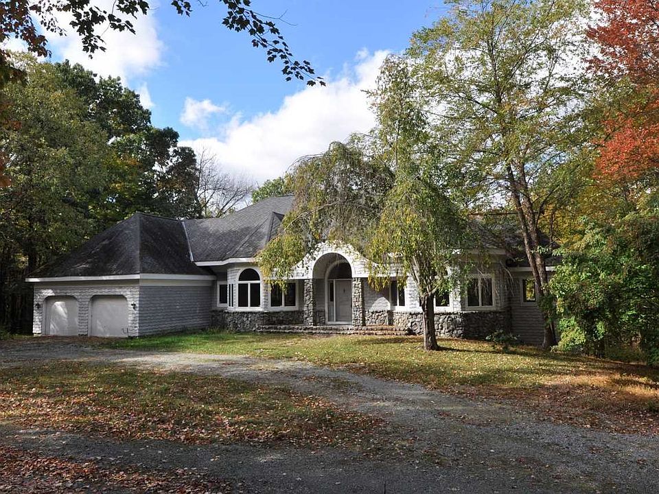 Private hilltop architecturally designed home on 30 acres with seasonal views looking west. Enter through this spacious foyer with a stone floor to a 36' x 21' Great room with a 16' vaulted beamed ceiling and a large stone fireplace. The kitchen within the great room has granite countertops, 2 sinks, double oven, stovetop, sub zero refrigerator, dishwasher and a compactor, an ideal layout for entertaining. Oak floors are throughout the first floor which also includes a formal dining room, den/bedroom, plus a very large master bedroom with a tray ceiling, two walk in closets and a master bath that is 10' x 17'! On the lower level there are two bedrooms that are separated by a Jack & Jill bath plus a large walk in cedar closet, wine cellar and a workshop. Also features a 13' x 17' screened porch with a stone floor, a separate laundry room an attached two-car garage. Worth a look.