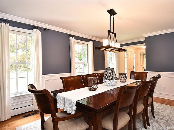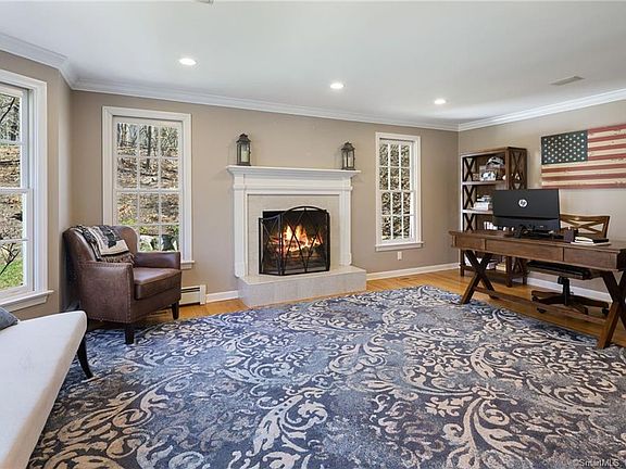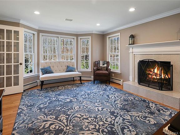 This is the home you've been waiting for! Pristine, lovingly cared for and meticulously updated, this classic colonial home is welcoming in every way. Its beautiful curb appeal continues within the interiors, with wainscoting throughout the dining room, and fireplace in the living room. The renovated kitchen features granite counters, a breakfast area with vaulted ceiling, two large pantries (one walk-in), a built-in window banquette, a built-in desk/command-center, and laundry room. French sliders lead to a covered Ipe wood deck featuring an exquisite stone fireplace, ample room for conversational seating and a large dining table. This al fresco living space showcases coffered paneling, dual ceiling fans, an outdoor TV, and built-in surround speakers. Inside, the very large great room is light, bright and airy with a vaulted ceiling and large windows. Upstairs, the primary suite boasts a recently added wing with two walk-in closets and a luxe bathroom. Magazine-worthy, it features two vanities, a soaking tub, shower, separate water closet. Three generous bedrooms and a full hall bath complete the second level. The lower level provides finished rec space, a separate gym, and a newly added mudroom with an abundance of storage. Walk-out access to the newly leveled/graded backyard, as well as the garage, offers the ultimate in convenience. New mechanicals, newer roof & driveway, truly make this home move-in ready. Closing subject to seller securing suitable housing.