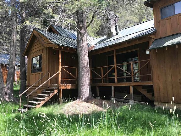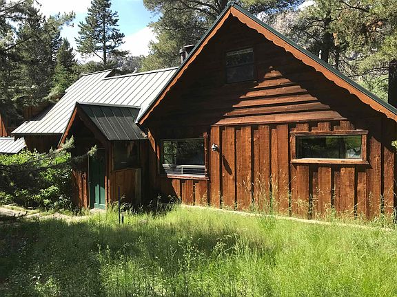 This charming vintage home may be what you are looking for if you seek a creek-side residence with a quiet and serene cul-de-sac location. Built circa 1960, this home has the natural feel of a true mountain home! Kitchen upgraded with newer appliances and flooring. Wet bar, breakfast nook, good sized dining area. Primary bedroom and bath separated from main living area on 2nd level. Two wood stoves, gas and electric heating. W/H electric and gas. Front patio and covered rear deck. Small attached garage with shop, and full laundry room with laundry sink. Upgraded with fire resistant metal roof and electric bear deterrent. Beautiful setting and situated on large .37 acre parcel with Reversed Creek meandering through the property. *Don't miss the additional attic bedrooms, accessed via pull-down ladder.
