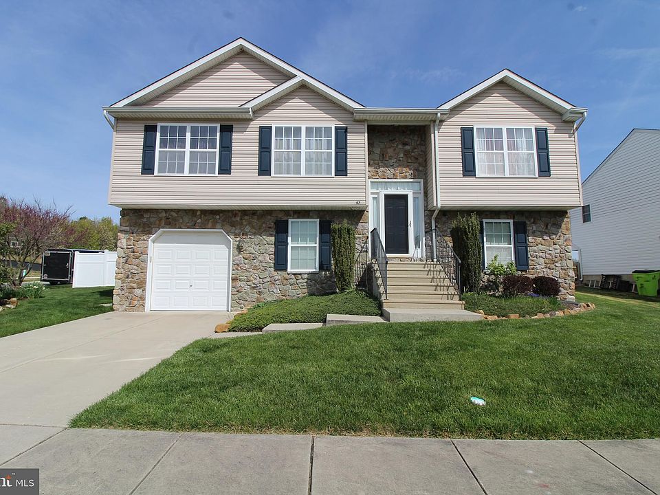 Welcome to 47 Shannon Dr in Elkton, MD! This split-level home, situated on an attractive corner lot, features 3 bedrooms, 2.5 bathrooms, and abundant natural light. Upon entry, a hardwood foyer with a chandelier leads to the living room, perfect for relaxation or entertaining. The eat in kitchen boasts ample cabinets, countertops, a pantry, and a slider to the extended two-level deck, ideal for outdoor enjoyment. The main bedroom suite impresses with a 4 piece bathroom featuring a separate tub and shower. Two additional bedrooms share a hall bathroom. The finished basement with high ceilings offers versatile space and includes a convenient half bath. Access the attached one-car garage and laundry room from the basement. Outside, enjoy the landscaped patio, 2nd level deck and 6-foot white privacy fence. This freshly painted home in The Pines At Cherry Hill community offers a perfect blend of comfort and charm – schedule your tour today!