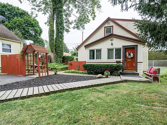 Welcome to 47 Sheraton Drive where your vision and creativity can come to life! This charming house sits back from the road providing you with tranquility. A wooden walkway leads to the front door of your enclosed porch where every sip of coffee can be enjoyed. A freshly painted living room w/built-in bookshelves and nook area will greet you. Flow into the kitchen/dining room where a large window provides natural light and has space for a large dining table. This kitchen has generous counter space, high ceilings with skylights, and breakfast bar. Kitchen appliances are included. The full bath is located on the main floor and has a linen closet to fit all bath essentials. Upstairs you will find 3 bedrooms. The main bedroom has a large skylight and when windows are open there is a comfortable cross breeze. A fenced off section of the yard encases a patio with picnic table for private summer dining. A shed to hold your outdoor necessities and a partial fence complete the backyard. Updates include: high efficiency gas furnace (2022) and electric hot water tank (2022). Fresh paint can be found in the living room and dining area. Delayed Negotiations 8/22/23 @ 12pm.