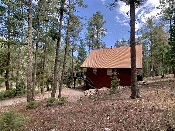 Bavarian cabin is tucked into the forested grounds, mountain ridge views draw visitors to front deck. Main level has deck, living areas, 1 bedroom & bath, 2 more bedrooms, bath & balcony are upstairs. Lots of recent updates include roof, paint inside & out, furnace, deck, water heater, some appliances, elec service panel, lighting, baths, flooring, wood walls & architectural details. Basement utility room. On 2 lots. Furnishings nego. Neighborhood has paved roads, gated secure entry, pond, party barn +