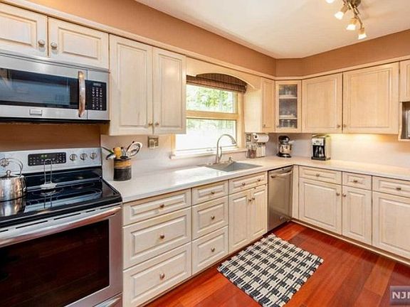 Packanack Lake beauty located on one of best streets in the community-easy access to beach, tennis, golf and more. This home offers updated kitchen w stainless steel appliances and custom cabinetry. Inviting family room has brick fireplace and recessed lighting. Formal dining room and spacious living room have lots of natural sunlight. Brazilian hardwood and oak floors throughout first floor. 4 spacious bedrooms and hall w new carpet and access to 2 attics. MBR includes walk-in closet, updated bath w steam shower and skylight. Updated main bath has ceramic tile, vanity w granite countertop, vaulted ceiling, and skylight. Basement has another large family room and a separate work out area w Universal Gym included. Yard includes a patio w hot tub. Enjoy amazing sunsets from your front screened-in porch w ceiling fan.