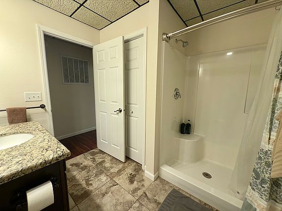 From the moment you walk in, the vaulted ceilings and open-concept living area make the home feel bright and inviting. The stone countertops and hardwood floors add timeless elegance, while the smart features—from thermostats to garage door openers—make daily life easy and efficient.