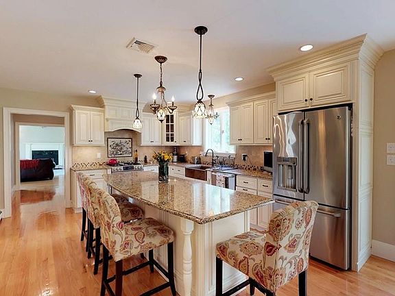 Not very often do homes like this become available, in a location as desirable as the home. The Owner went above and beyond to create such a beautiful, welcoming home. The focus of the home is the large gourmet kitchen, there is enough room for a banquet sized table, the island itself can fit at least 8 people, stainless steel appliances, custom cabinetry, granite counters, copper farmers sink and elegant lighting. The family room is very large with a gas fireplace, cathedral ceilings, gleaming hardwood floors throughout. There are several sliding glass doors which lead to a private backyard with a Heated Gunite Pool, and a separate grass area large enough for a soccer game. The second floor has three bedrooms, the master is en suite with a walk in closet. The two other bedrooms are generously sized. The third floor is also finished with the fourth bedroom, a 3/4 bath and a bonus room which would make a great guest or teen suite. The detail and finishes in this home are spectacular.