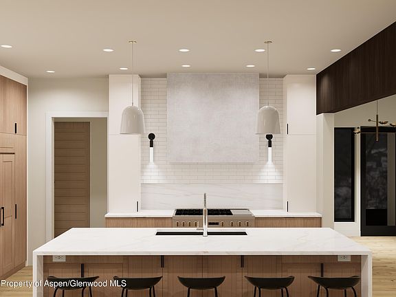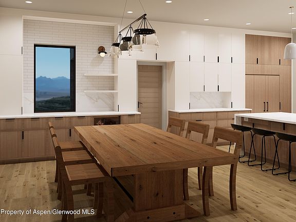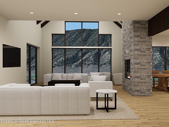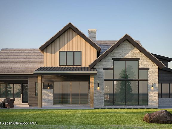 Introducing the newest offering in Aspen Glen, a property that encompasses a seamless blend of indoor luxury and outdoor beauty. This home presents a variety of well-thought-out amenities including a private office with Mt. Sopris views, oversized garage bay for recreational vehicles and custom interior finishes selected by Murray Design Company. The modern kitchen, designed for both functionality and aesthetic appeal, features custom cabinetry, Monogram appliances and a generous serving pantry. As you move through the kitchen into the dining and living areas, a double-sided, stone fireplace creates a statement while giving a subtle sense of separation between the spaces. The primary bedroom, located on the main floor, is a serene retreat that flows into an en suite, spa-like bathroom complete with soaking tub and walk-in shower. An additional bedroom suite adorns the lower level of the home. The second floor opens to a lofty living space flanked by two bedroom suites and an in-home office.