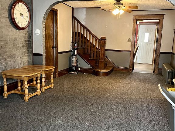 47 Spring St.. Welcome to this charming 4-bedroom, 2-bathroom home with spacious living areas filled with potential and ready for your personal touch! The layout includes four well-sized bedrooms, offering plenty of space for family and guests. The two bathrooms are functional and provide an excellent opportunity for modernization, allowing you to create the perfect oasis. One of the key highlights of this home is the dual garages, providing ample space for vehicles, storage, or even a workshop for your hobbies. This property also boasts a large front porch, perfect for enjoying your morning coffee.  The property has recently received a new roof within the last two years, adding peace of mind and energy efficiency to your investment. With great bones, this house is a canvas waiting for your vision.
