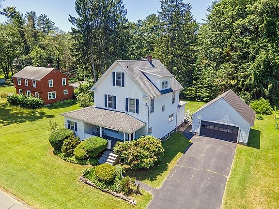 There is lots of room inside and out of this much loved Traditional style home in Four Corners. The spacious living room opens to the dining room with a south-facing bay window and sunroom which would make a sweet little office or playroom. There is also a good-sized den that works well as a bedroom if you need a first-floor bedroom. The kitchen has plenty of cabinets and counter space and a hidden pass-through into the dining room. A newly tiled bathroom is on the first floor as well. Three good-sized bedrooms, a half bath, and a walk-up attic. Two porches; an open porch on the front, and an enclosed porch on the back that overlooks a well-manicured yard that consists of a double lot, just under a half-acre with a shed, and a two-car garage.