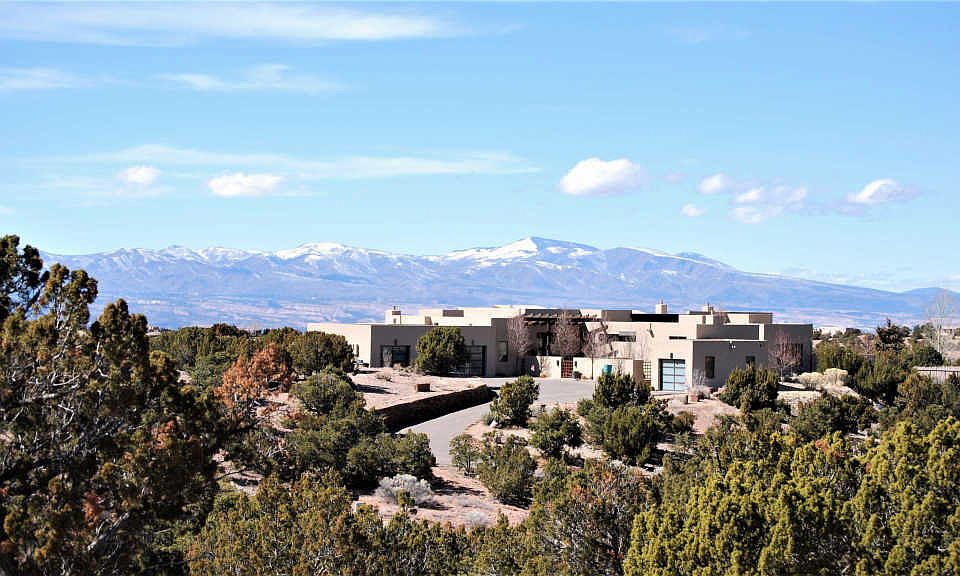 WOW by definition is an exclamation of surprise, wonder or pleasure. Not a day, or even a moment in this magical contemporary home will pass by without experiencing that feeling! The setting, joined with perfection in design, captures the essence of what it means to live in Santa Fe. Designed by renowned architect Craig Hoopes; his award winning projects include The Lensic Center for Performing Arts in downtown Santa Fe. Sculpted with painstaking attention to detail, the home received the Grand Hacienda Award, Best Design, Best Master Suite and Best Outdoor Spaces in the 2014 Santa Fe Haciendas Parade of Homes! Features include 4530 sqft of heated space, over 2000 sqft of covered portals, a 4 car garage, 3 bedrooms and 3 1/2 baths, including an attached casita with separate garage. The kitchen has a large island, Wolf/ Sub-Zero appliances, 2 dishwashers, induction cook top, steam and convection ovens and wine cooler. A dining area with an exquisite glass walled wine cellar holding over 1200 bottles of wine and a living room with horizon to horizon views. The master suite and its spa-like bath are the perfect place to rejuvenate. A gallery hall where your art collection can take center stage. 2 separate studies/offices, 4 gas fireplaces, diamond plaster walls, custom light fixtures, and indoor/outdoor electric shades. Outdoor living features a kitchen and extensive landscaping; including 3 fountains. 2.38 acres in Sundance Ridge Estates with Sangre and Jemez views