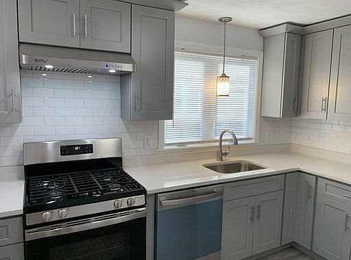 Newly renovated 3-bed/1-bath apartment for rent in Medford. A few blocks to Rt-93 for easy commuting. Updated kitchen with gas stove, dishwasher, fridge, with new flooring and cabinetry throughout. Living room with hardwood floors throughout. Three bedrooms - one bedroom was originally dining room and converted to third bedroom. Front and back porches. Shared yard/patio. Coin-op laundry in-basement. Two (2) parking spaces included in rent. Available NOW. No pets please. First, security and brokers.