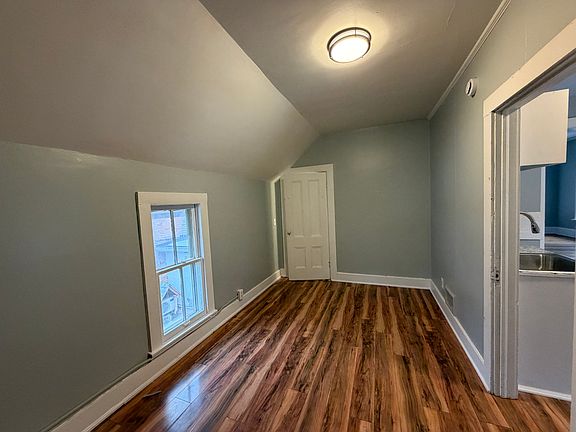 Spacious 2 bedroom upper apartment featuring an updated eat-in kitchen and a formal living room. The unit offers three generously sized bedrooms and one full bathroom. Stainless steel refrigerator and stove are included. Convenient off-street parking with a full row available, comfortably fitting 2 3 vehicles. Garage access also available for added storage or parking convenience. Minimum credit score of 600 and 2.5x times rent.