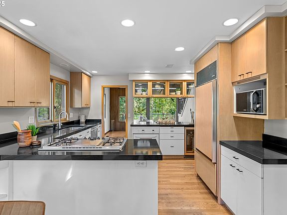 Step into this stunning NW Contemporary home in Lake Oswego’s sought-after Mt. Park neighborhood, offering a perfect blend of style, comfort, and convenience. Backing to tranquil greenspace, this home is filled with natural light from its large windows and vaulted exposed wood ceilings. Thoughtful updates throughout include newer pipes, electrical panel, and gorgeous wood floors. Modern touches shine with new lighting fixtures, switches, outlets, faucets, sinks, and garbage disposal. Fresh interior paint and quartz counters in both the kitchen and bathrooms elevate the space with timeless style. The expansive daylight basement features a spacious great room, an additional bedroom, full bathroom, and a rec room ideal for a ping pong or pool table. Step outside to the patio and enjoy a brand-new hot tub with peaceful territorial views.Upstairs, a Trex deck off the main floor invites morning coffee or evening relaxation. All this is in an unbeatable location within walking distance to Starbucks, New Seasons, and nearby parks and trails.A truly beautiful home ready to enjoy.