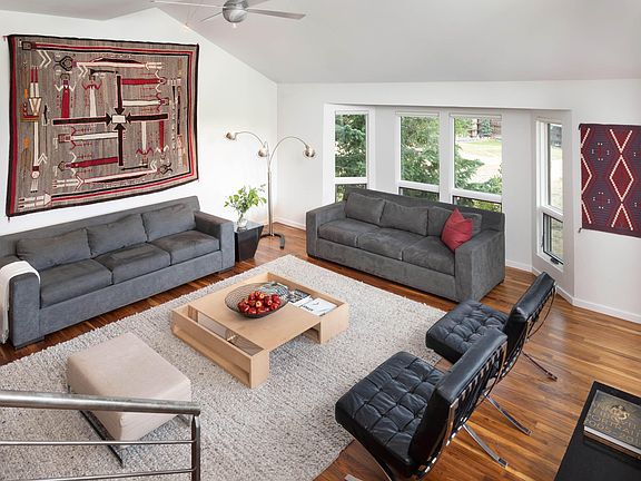 A brilliantly renovated 4-bedroom, corner townhome privately located at the end of a cul-de-sac on Fanny Hill. Views from this sophisticated, contemporary property overlook the ski trail, Base Village and the distant mountains beyond. Among its many features: a living room with vaulted ceilings, reclaimed hickory floors, a natural slate woodburning fireplace, a built-in maple entertainment center, custom furnishings, and adjacent deck. The dining room, with light on two sides, includes a bay picture window which captures mtn views and is highlighted by an extraordinary glass chandelier and built-in walnut credenza. The kitchen is designed/equipped to serve a crowd and has sleek walnut cabinets, black granite/stainless counters, a gas range, slate floors, and a breakfast nook. The