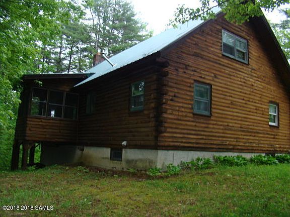 QSBY PRIVACY! If you are looking for nice home in a quiet area, this is IT! Authentic log home set on 5 acres on the West Mountain range. Short drive to schools/ services and I87. 2 br down, master suite with bath up. Stone FP., Wrap deck with exterior access! Large barn/open garage structure! There is much potential here for you to explore. Come take a look!