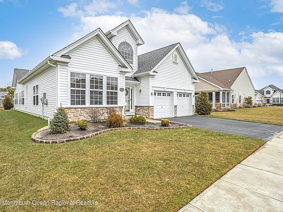 You won't be disappointed in the lovely home with many upgrades. It has an open floor plan, high ceilings, beautifully landscaped front and back, pavers on the patio with privacy shrubs, an awning and gas valve for a grill. The Inside is finished beautifully with a Doubled-face gas fireplace overlooking the living room and sunroom. The Gourmet kitchen is nicely done with granite, center island with breakfast bar and dinette area. The formal dining Rm is quite large and even has a den/library with french doors. The Master Bath is HUGE with double vanities, granite countertops, and a large shower. The garage is heated with a finished floor and pull- down stairs for the attic.- Some Extras features include a 16KW generator, new laminate flooring, sec. sys., hose bib in garage, tub & well.