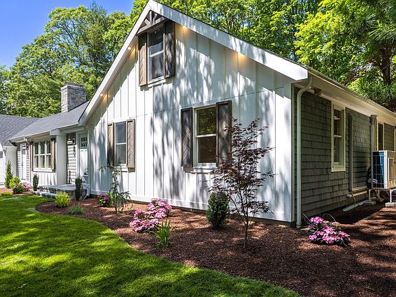 This beautifully renovated home is conveniently located near Main Street's vibrant restaurants, shops, schools, beaches and the Bike Path. Offering a perfect blend of style and functionality, it's set against the serene backdrop of Beebe Woods. The spacious single-level layout includes 3 bedrooms and 2 bathrooms, along with a mudroom providing storage and laundry facilities. The open-concept living area features refined details, hardwood floors, and a striking floor-to-ceiling wood-burning fireplace, seamlessly connected to the dining area. The gourmet kitchen has a central island ideal for gatherings, quartz countertops, sleek cabinetry, chic lighting, a stylish backsplash, and stainless-steel appliances. Additional highlights include a versatile walk-up loft/office and a finished lower level offering 600 sq ft of flexible space. The private backyard oasis offers a patio, shed with a sliding barn door and beverage cooler, colorful landscaping and room for a pool. This is a must see!