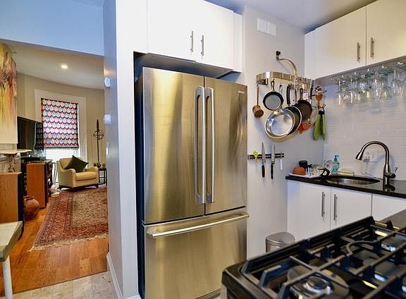 Sunny renovated floor-through 1 bedroom plus office has refinished hardwood floors, large bow windows, high ceilings overlooking Union Park. This stunning home features 2 decorative fire places, granite and stainless steel kitchen with gas range. Bathroom is tiled and granite with full size bath. The unit includes a washer and dryer and heat and hot water..