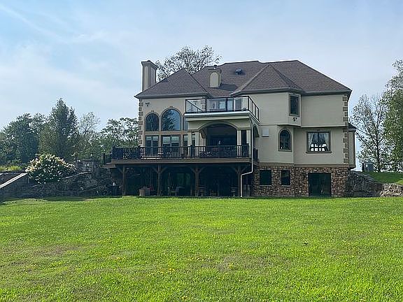 This show-stopping grand house on the hill was lovingly built with the finest craftsmanship by current owner and is in the Valley Central School district. It sits atop a 49 acre hill with privacy and amazing views and sunsets which you can view from the spa tub or fire pit. Home is decorated in a European style using only solid surfaces throughout. All ceilings are above average height, all doors are solid mahogany, top-of-the line appliances in chef’s kitchen with walk-in pantry. Closets and storage abound on all three floors of living space. This 49 acre property includes two subdividable lots with sunset views this ivalue is not iincluded in the Zestimate and each lot is valued at $190,000. The main level has an office, 2 gathering rooms each with gas fireplace, formal dining room, gourmet kitchen with high-end appliances and butler’s pantry and three-car garage. Quality finishes such as tile and wood floors, solid mahogany doors are throughout house. The third level is divided into two wings; one for the huge primary suite which holds seating area with fireplace, sliders to own deck with plexiglass rails, huge, luxurious primary bath and large closet/dressing room. Guest bedrooms and bonus room grace the rest of this floor. Each room has access to full bathroom. The lowest level is complete with amazing 1,000 + bottle wine cellar and vault for your finest wines, tasting table made of reclaimed wood. The rest of the cellar has lounge area with pool table, seating and kitchenette which open up to a finished patio for seating. There is a bedroom and full bath on this level which are perfect for guests. The entire lower level has own entrance and parking space and can be used as a guest retreat or rental. PRINCIPALS ONLY. Will entertain offers