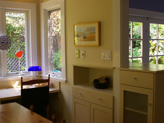 Centrally located in the heart of Berkeley's charming Thousand Oaks neighborhood. Walking distance to grocery stores, shops, restaurants, and Sunday farmers market. Five to ten minutes to downtown Berkeley, BART, or UC Berkeley. Two-bedrooms, one-and-a half baths. Built in 1926, completely renovated with many traditional/authentic details. Large eat-in kitchen with marble countertops, high-end stainless-steel appliances (including washer/dryer), custom-built table and chairs, and built-in desk with filing drawers. Gas fireplace. Many built-in cabinets, closets, shelves, and basement for storage. Meticulously maintained with hardwood floors.Secluded landscaped backyard with furniture, bbq, and deck. One car garage included for parking, can be used as a workshop or studio. Plenty of street parking. View of downtown San Francisco. Sunny with open but private feeling nestled in Live Oak trees. Pictures show fully furnished house but now offering with minimal to no furnishings. Long-term minimum one year lease only. Owner pays for gardener, water, and garbage. Pet negotiable. Minimum one year lease.