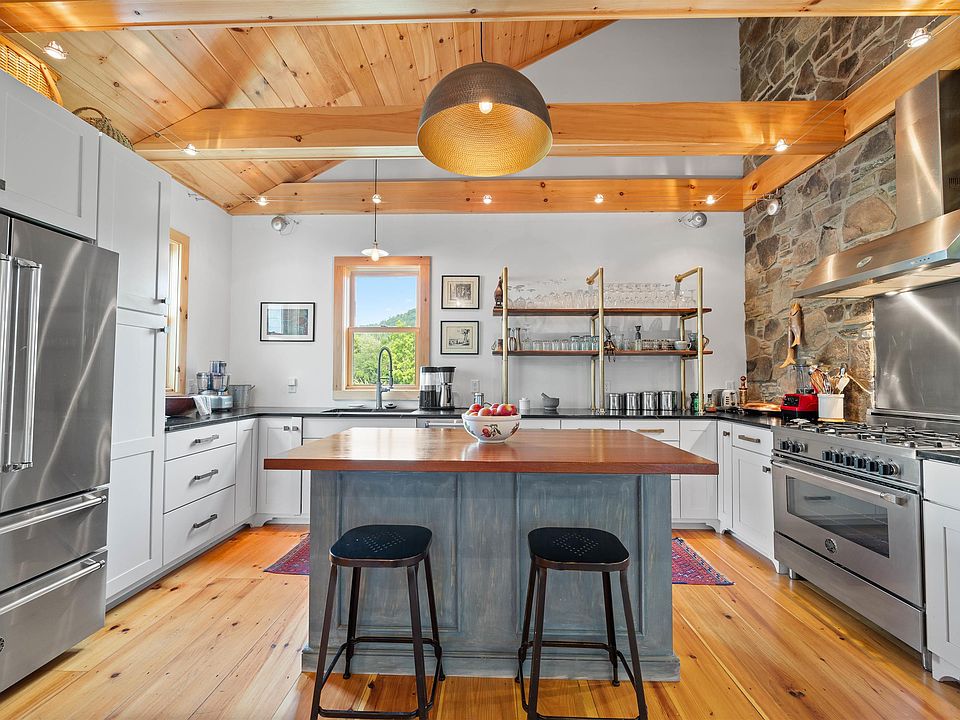 Open House Sunday 1/12 11am-2pm! Custom built barn replica in Charlotte VT with views of Mt. Philo offers a blend of modern design and energy efficiency. The home design includes elements of natural materials, while the contemporary aspect has sleek lines, open spaces, and large windows to maximize the views. The home is custom built by top quality builder Greg Shover. The hand-tossed aggregate concrete flooring offers a rustic yet refined look, and the radiant floor heat adds both comfort and efficiency. This flooring choice creates a cohesive flow between spaces and keep the home warm. Known for their Italian craftsmanship, Bertozzani appliances will add a touch of elegance and high performance to your kitchen. Their sleek design and advanced features will complement both contemporary and farmhouse aesthetics. The vaulted wood ceiling and Conant custom brass shelves crafted from an old ship bring a delightful element to the kitchen. The two primary ensuite bedrooms with spa bathrooms provide both relaxation and comfort. The third bedroom is a versatile space can be used as a third bedroom or office. Incorporating sustainable materials in the sunroom highlights a commitment to eco-friendly design while adding a bright, inviting space perfect for a home studio or music room. The finished loft space over the garage is a plus. This blend of high-quality materials, custom design, and modern amenities create a home that is both luxurious and functional in Charlotte Vermont!