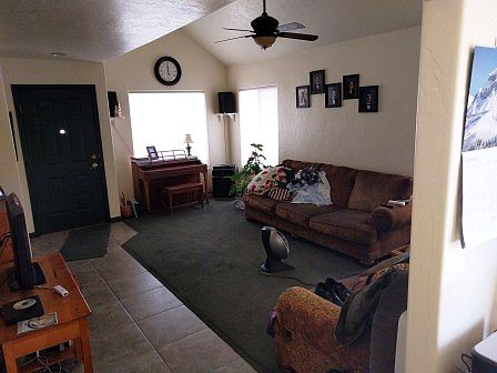 This beautiful Sagepoint home is in an amazing location and close by to recreation! Featuring vaulted ceilings, ceiling fans throughout, a laundry room, and a large kitchen with tons of cabinets and bar seating. The home has three sliding doors leading to the backyard, from the dining room, master bedroom, and second main level bedroom. The backyard has a large patio area and