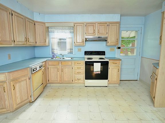 Cute brick cape on a quiet street in Pottstown with hardwood floors and a spacious eat in kitchen. Enter through a covered front porch into a large living room with brick fireplace. The kitchen has electric cooking, double sink, dishwasher and side door which leads to a covered rear patio and large level yard. Two bedrooms on the first floor are serviced by a full hall bath. The second level has two additional bedrooms and attic storage. The basement is partially finished and offers several areas for storage and additional finishing/uses. Attached 1-car garage and driveway parking. Replacement windows throughout. Home needs work, but is priced accordingly for a quick sale.