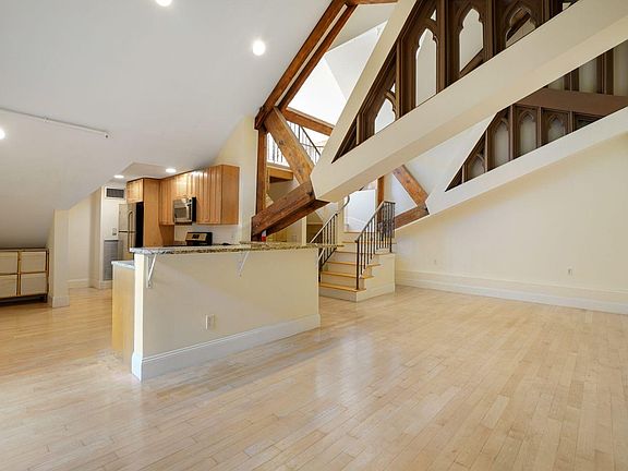PHOTOS ARE OF ANOTHER UNIT WITH EXACT SAME UNIT FLOOR PLAN and finishes, actual photos coming soon. UNIQUE one of a kind apartment home! One of a kind 2 bed/2.5 bath in a converted church at the Broadway T stop in South Boston. Hardwood floors, massive, stunning soaring ceilings with hand painted details, original church arches, granite/stainless kitchen and laundry in unit. PRIVATE DECK WITH CITY VIEWS and one parking spot included in the rent as well as heat/hot water. Jan 1st! First month, last month and a one month broker fee due at lease signing. Heat and hot water included, tenant pays electric